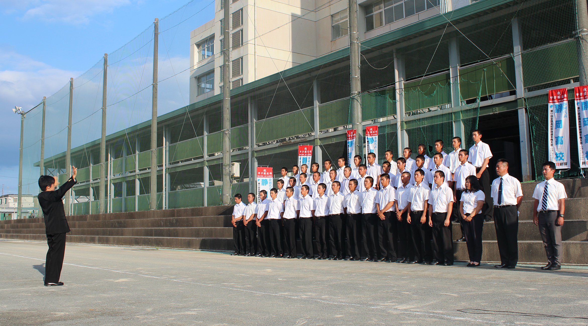 後援会では同窓会各支部総会でPR活動をしています。本年は夏の大会前に、焼津支部、庵原支部、関西支部、関東同窓会でPRしてきました。今春の進学状況、現チーム紹介をスライドを使って説明し、後援会へのご支援をお願いしています。(写真は関東同窓会でのPRの模様です。
